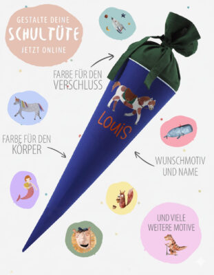 Mit unserem Schultütenkonfigurator gestaltest du Schritt für Schritt ein echtes Unikat. Wähle dein Lieblingsmotiv aus unseren exklusiven Designs von Gretas Schwester & halfbird und mache sie mit dem Namen deines Kindes zu etwas ganz Besonderem.