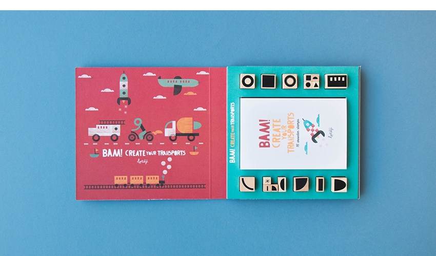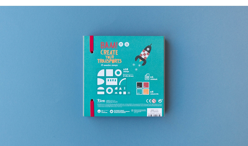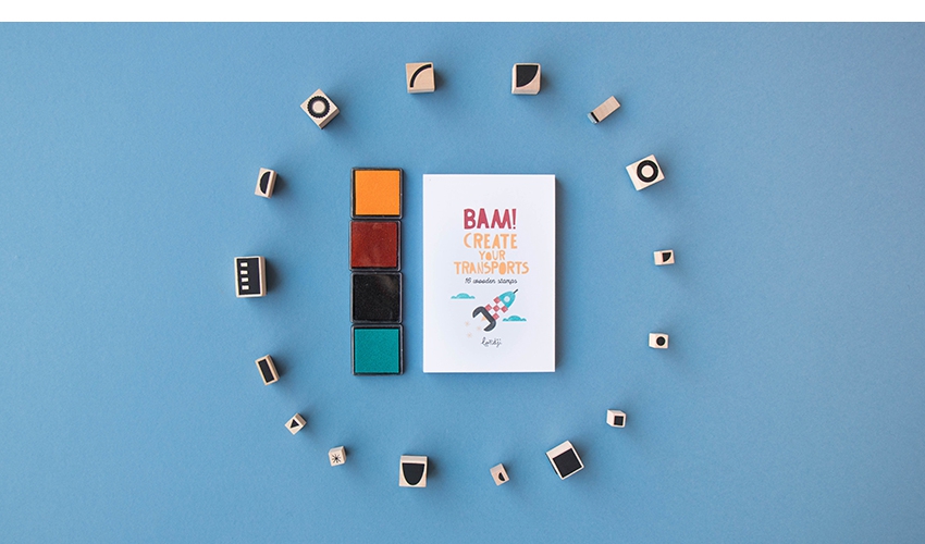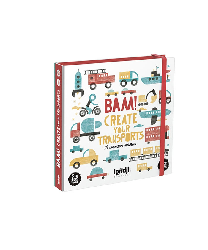Mit Londji wird die Welt nicht nur bunter, sondern auch kreativer! Mit ‚Bam!‘ kommt hier ein cooles Stempel-Set, mit denen du deinen eigenen Fuhrpark kreierst! Gestalte die verschiedensten Transportmittel – ob Autos, Flugzeuge, Raketen, Züge… kurz, lang, hoch oder klitzeklein. Die Reise geht so weit die Fantasie reicht!