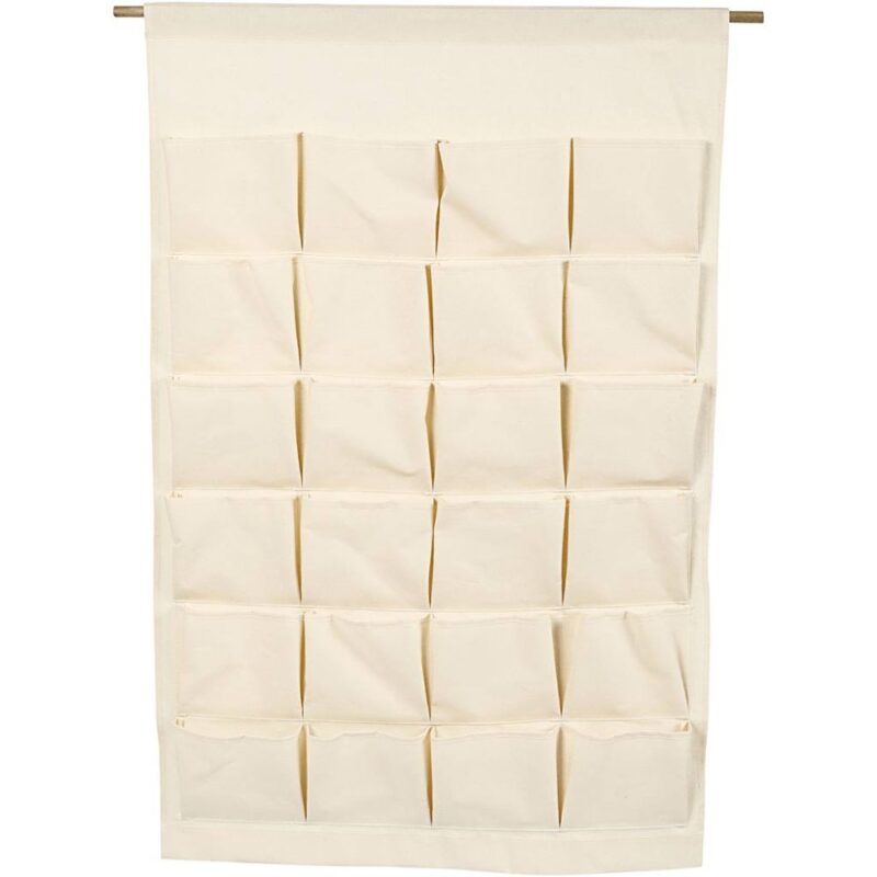 Der praktische Hänge-Organizer mit 24 robusten Taschen aus kräftigem Canvas bietet vielseitige Aufbewahrung für Haushalt, Büro oder Hobby. Mit einer kunststoffbeschichteten Rückseite sorgt er für Stabilität und einfache Reinigung. Dank des Holzstabaufsatzes lässt er sich bequem aufhängen und ist individuell gestaltbar – perfekt zum Dekorieren mit Textilmarkern, Stofffarben oder Stickern. Ideal als Adventkalender, um kleine Überraschungen zu verstecken, oder für die Aufbewahrung von Büroartikeln, Spielzeug, Werkzeug und mehr. Mit Maßen von 60 × 93 cm passt er in jeden Raum und sorgt für Ordnung auf kreative Weise.