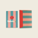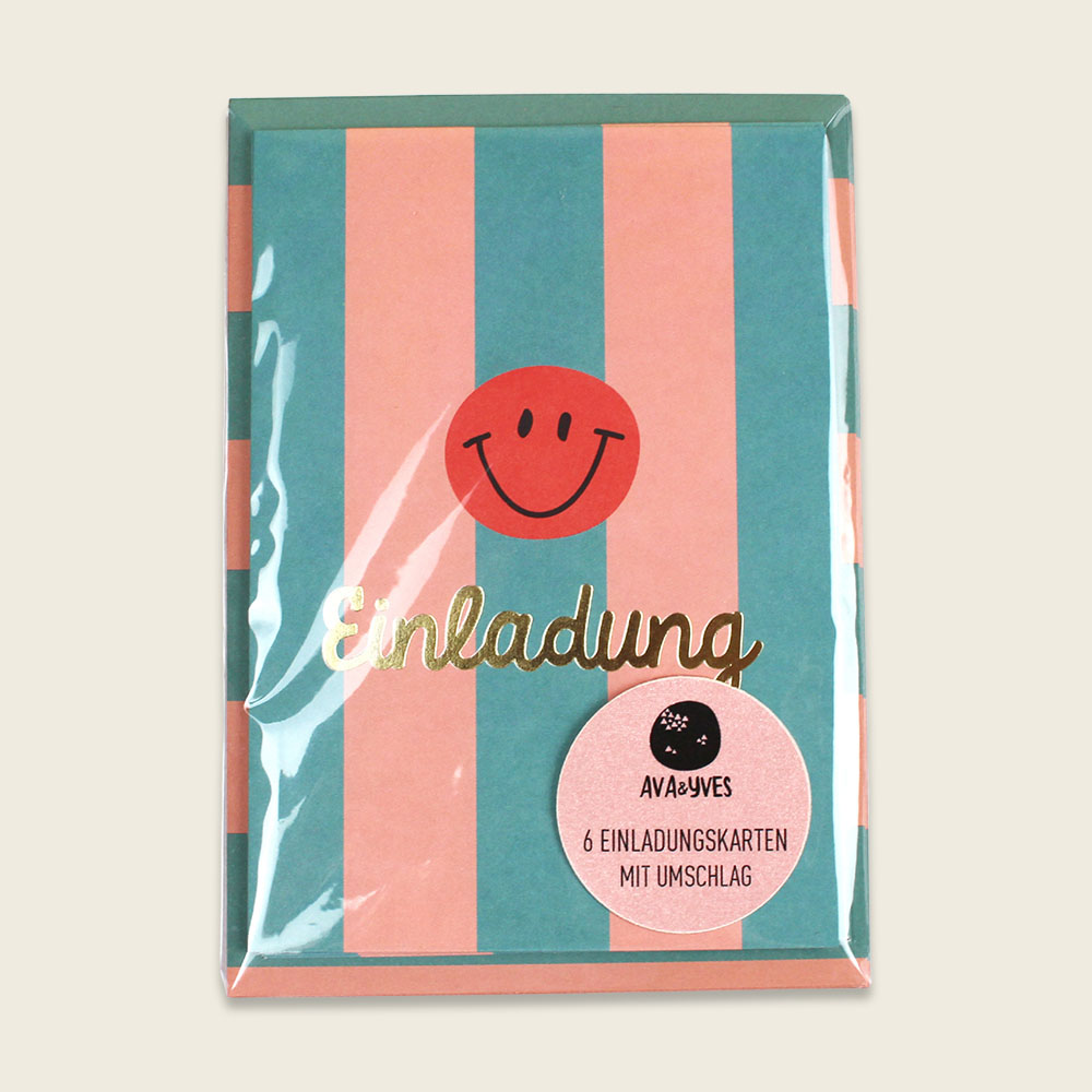 Einladungskarten-Set mit Goldfolie – Stripes türkis/lachs/koralle