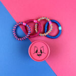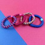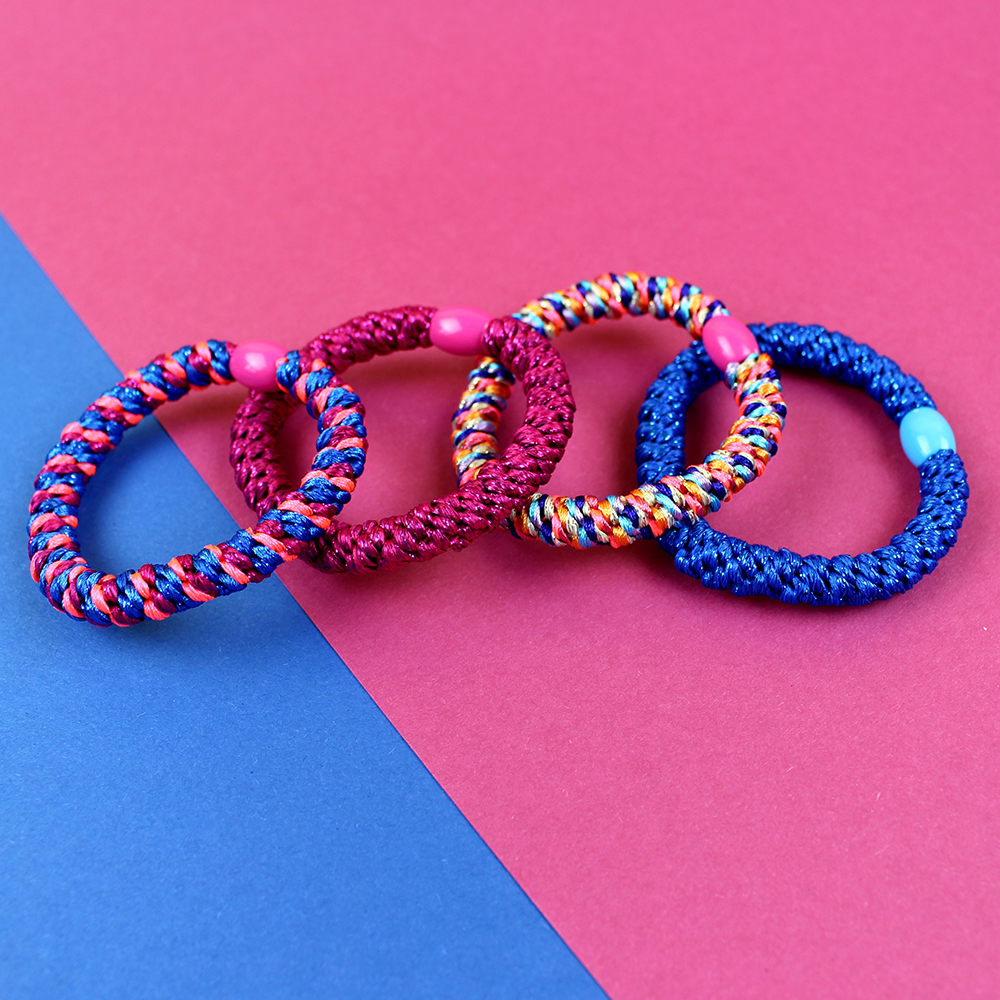 Haargummi-Set pink/blau mit 4 Haargummis in runder Geschenkbox