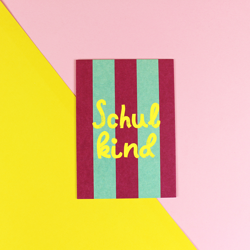 Postkarte Schulkind brombeer/mint – Neon Gelb