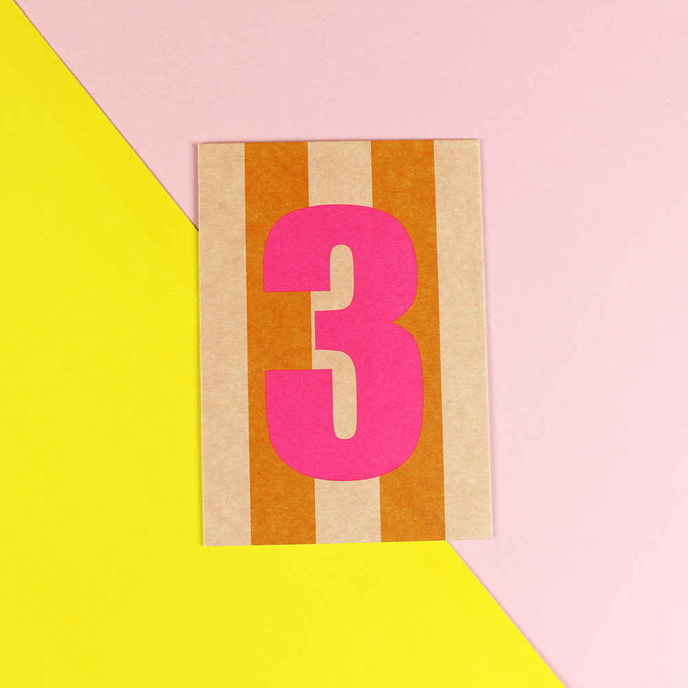 Postkarte Zahl (pink/gelb/Neon Pink3)