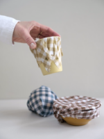 Die Bienenwachswickel werden in einem 3er-Pack geliefert, das 3 verschiedene Farben mit Karomuster enthält.