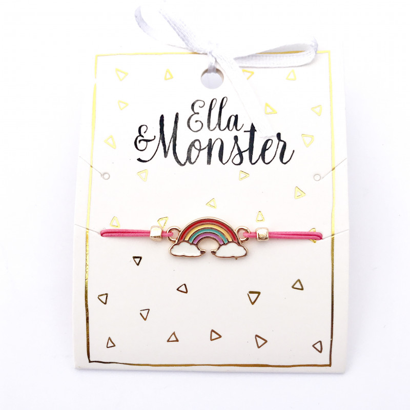 Das süße Armband von Ella & Monster ist dank verstellbarem Gummiband passend für dein Ärmchen. Zarte Farben und der Regenbogen-Anhänger machen das Armband zu einem tollen Geschenk.
