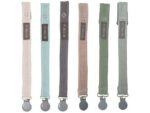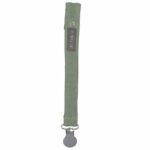 Das Schnullerband von FABELAB in „Sage Green“ kommt in schlichtem Look und fühlt sich sehr gut an. Der Klipser, befestigt an einem Kleidungsstück oder ähnlichem, sorgt dafür, dass der Schnuller nicht verloren geht und immer zur Hand ist. Eine Schlaufe, welche durch einen Druckknopf geöffnet und geschlossen wird, hält den Sauger. Besonders praktisch, da man zum Lösen des Bandes den Schnuller nicht entwenden muss.