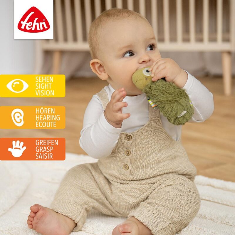 Entdecke den kuschelweichen Chamäleon-Greifling, dein treuer Begleiter ab der Geburt! Einfach zu greifen und mit Rassel, fördert er die Neugier, Motorik und die Sinne deines Babys.
