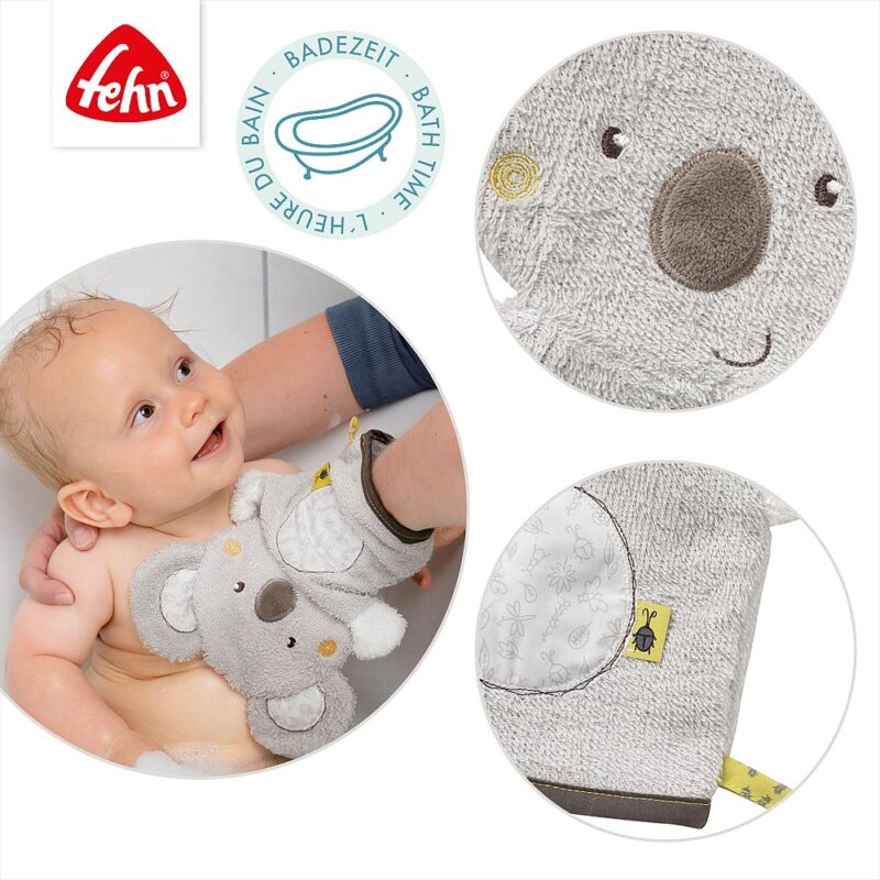 Mache das Baden deines Babys zum fröhlichen Erlebnis mit unserem Waschlappen im Tiermotiv – der süße Koala sorgt mit seinen sanften Farben und weichem Material für großen Badespaß. Der kleine Helfer ist vielseitig einsetzbar: Zum Baden, als Handpuppe zum Spielen oder zum sanften Reinigen. Der weich geraute Handtuchfrottee ist besonders schonend zur empfindlichen Babyhaut und zaubert ein glückliches Lächeln ins Gesicht. Mit süßen Details und einer schönen Farbe ist der Koala auch als Trockentier im Badezimmer ein niedlicher Blickfang.