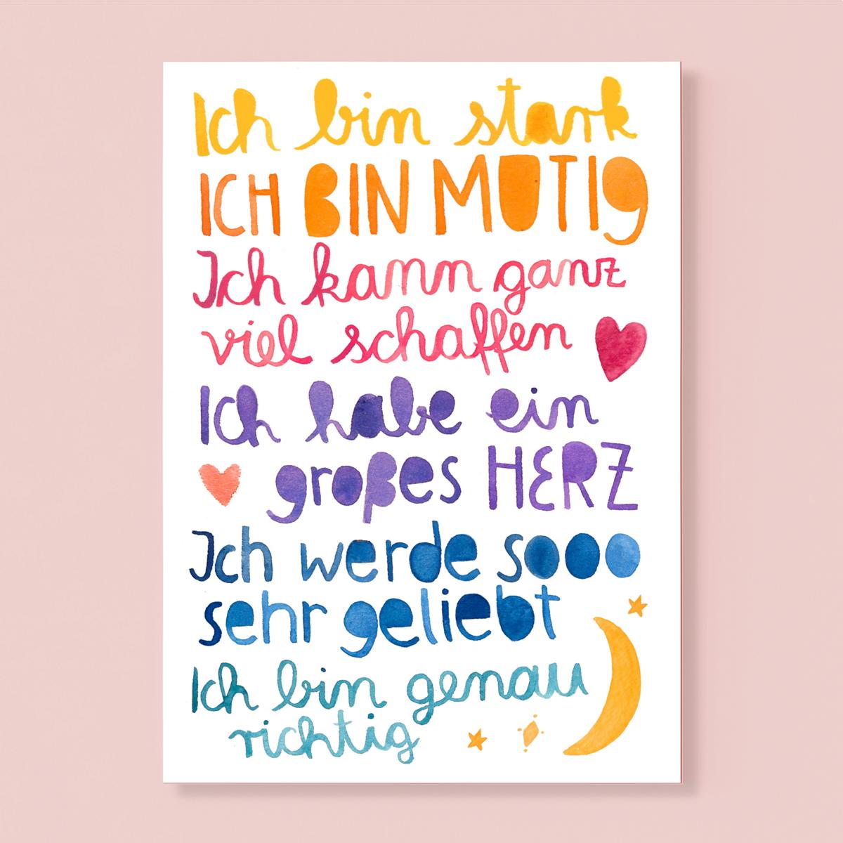 Die bunt illustrierte Postkarte von Frau Ottilie übermittelt deine Gedanken und zaubert sicher auch ein Lächeln auf die Lippen.