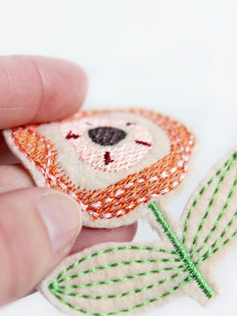 Größe LxH 6,8 x 6,0cm gestickt in Deutschland auf beigem Filz zum einfachen Aufbügeln waschbar bei 40° auf links vegan