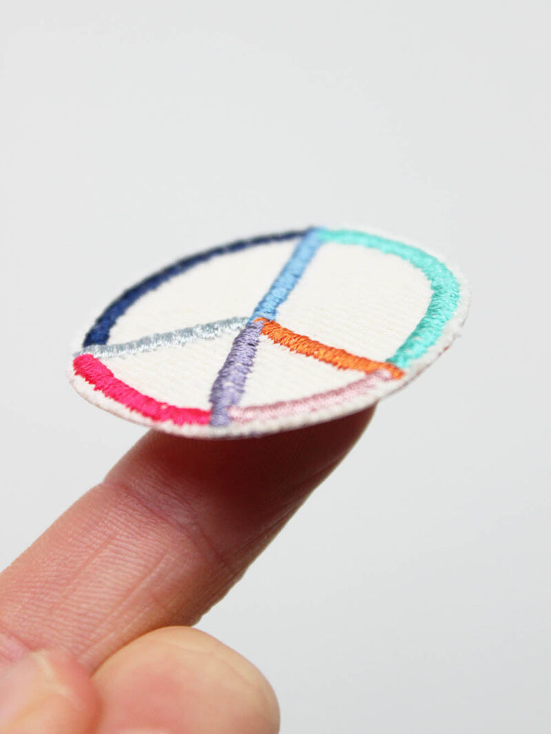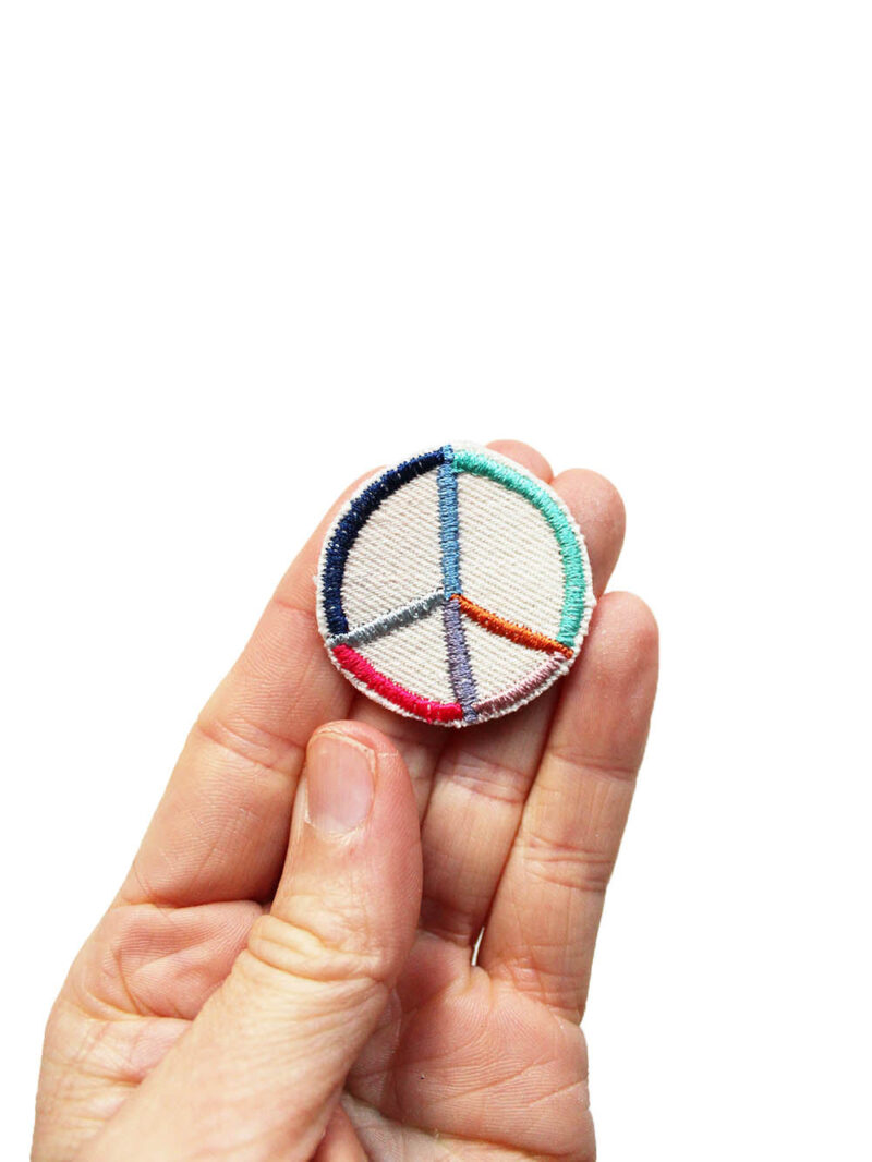 Wir mögen Bunt und wir mögen den Frieden. Und mit unserem Peace Patch wollen wir das in die Welt tragen. Der Bügelflicken ist schön weich und flexibel und damit angenehm auf der Kleidung. Du kannst ihn auf alle bügelbaren Stoffe aufbügeln, und musst nicht zusätzlich annähen. Größe 3,5cm gestickt in Deutschland auf robustem Biobaumwollstoff in natur aus Recyclinggarn in vielen Farben zum einfachen Aufbügeln und Flicken von Kleidung kein Annähen nötig! waschbar bei 40° auf links