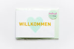 Lindgrünes Herz mit goldener Schrift begrüßen dich! Der Kunstdruck wurde im Siebdruck hergestellt. Die Außenkante bemale ich von Hand in Neon Pink. Briefumschlag ist auch dabei – dann ab die Post!