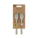 Stapelbare Kinderlöffel in geometrischem Design mit matter Optik.