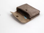 Das Leder-Portemonnaie hat eine Klappe mit Druckknopf und zwei Faltenbälge. Davon einer mit Reißverschluss – perfekt für ein paar Münzen.