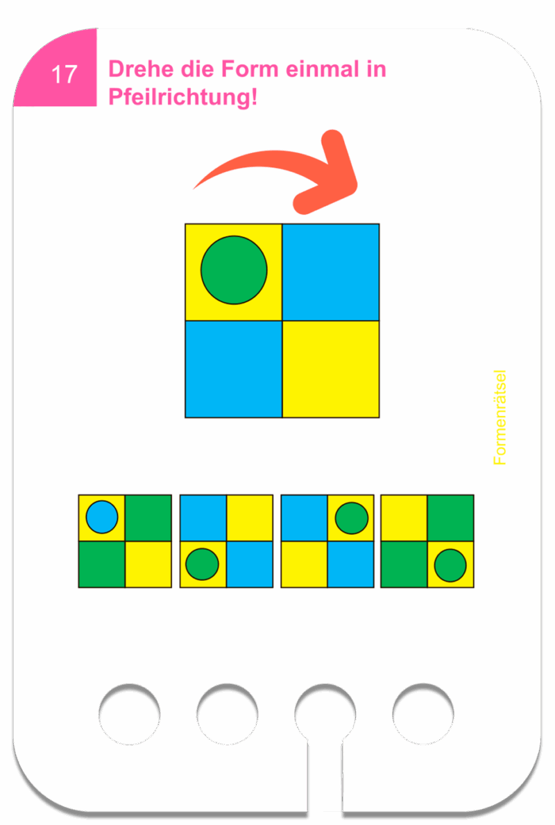 Dein handlicher Schnelltrainer, um Aufgaben spielerisch zu lösen. Richtig eingelocht, lässt sich die Karte kinderleicht herausziehen. Für kleine Erfolgserlebnisse, die Deine Kids ganz alleine entdecken können! Starte jetzt in Dein Lernabenteuer!