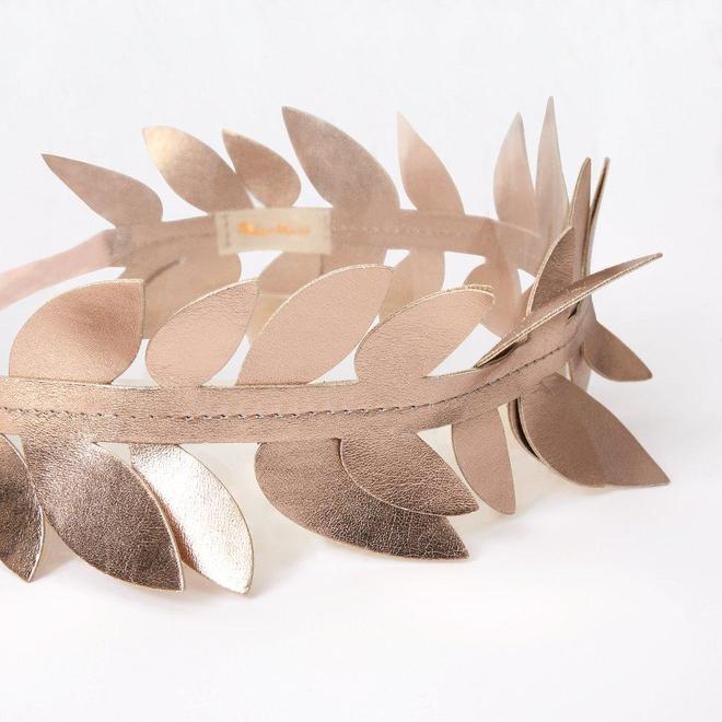 Perfekt für kleine Blumenmädchen, Elfen und Feen! Verkleiden ist toll, macht Spaß und beflügelt die Fantasie – da ist diese roségoldene Lorbeerblattkrone aus glänzendem Kunstleder die perfekte Ergänzung für jede Verkleidungskiste.