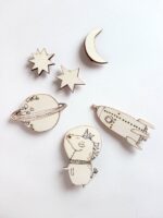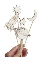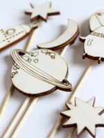Das Auge isst bekanntlich mit und ist die Torte mit diesem süßen Caketopper von Halfbird dekoriert, strahlen mit Sicherheit auch die Augen am Tisch! Die Cake Topper ‚Weltraum‘ werden bei deiner nächsten Weltall Motto Party sicher das I-Tüpfelchen auf dem Kuchen. Mit Planet, Sternen, Spacehorn, Mond und Rakete wird jeder Kuchen zum Meisterstück.