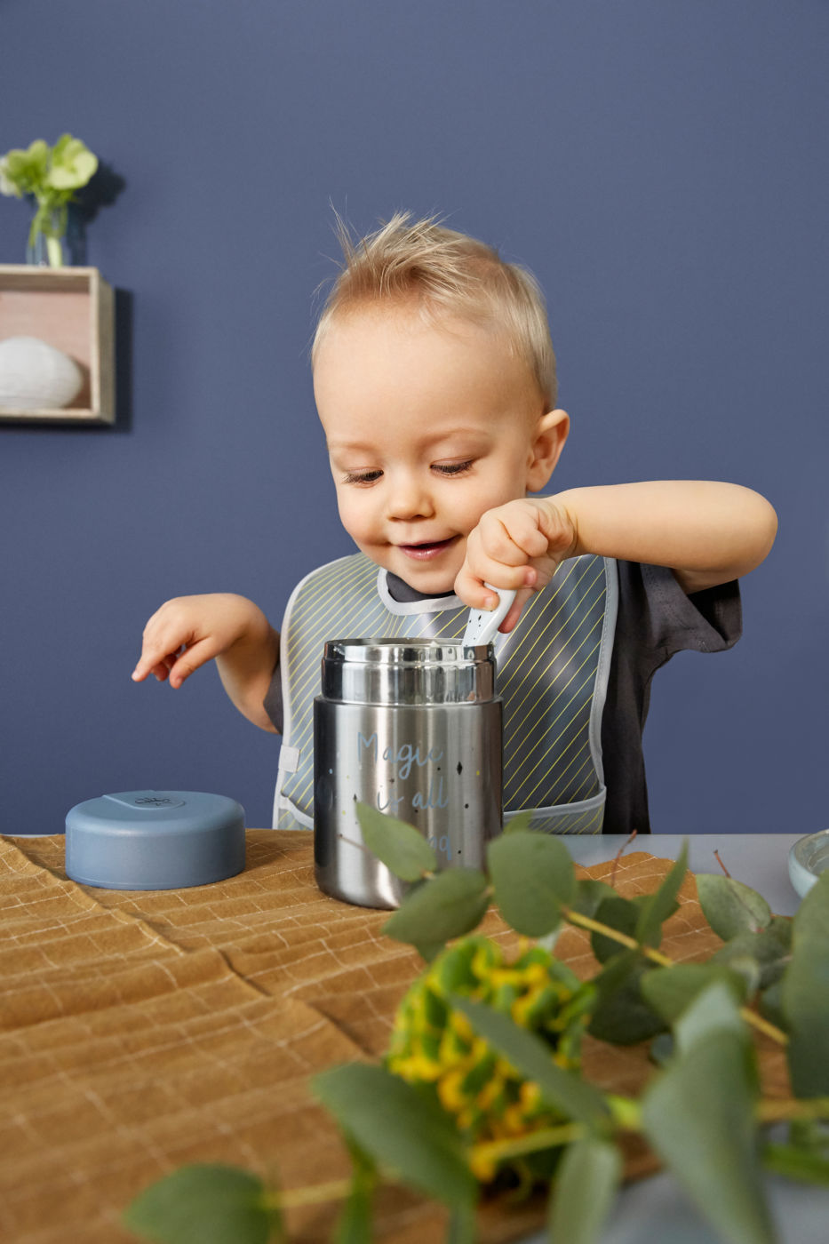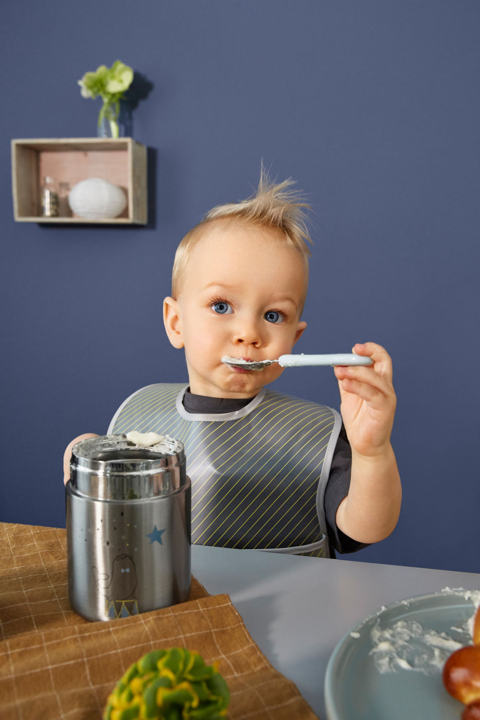 Mit dem LÄSSIG Thermobehälter aus Edelstahl ist der Babybrei auch unterwegs sofort servierbereit und dazu angenehm temperiert. Die Thermos Lunch Box mit dem fröhlichen Seehund fasst 315 ml, ist für warme oder kalte Lebensmittel und auslaufsicher.