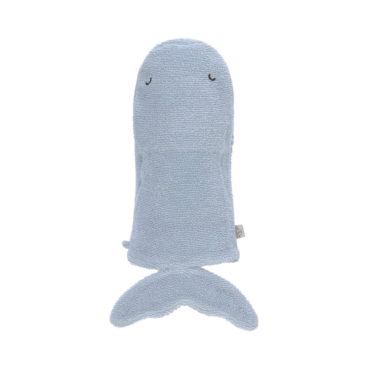 Spiel-Waschhandschuh aus Bio-Baumwolle – Wal / Blau