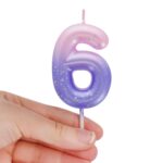 Puste die Kerze auf der Torte aus und wünsch dir etwas! Wie alt wirst du? Sag es mit der rosa Geburtstagskerze mit der Zahl 6.