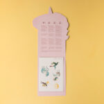 Zehn temporäre Tattoos – die Abziehbildchen einfach auf der gewünschtenStelle platzieren, befeuchten und durchweichen lassen. Das Trägerpapier sanft wegschieben und voíla!