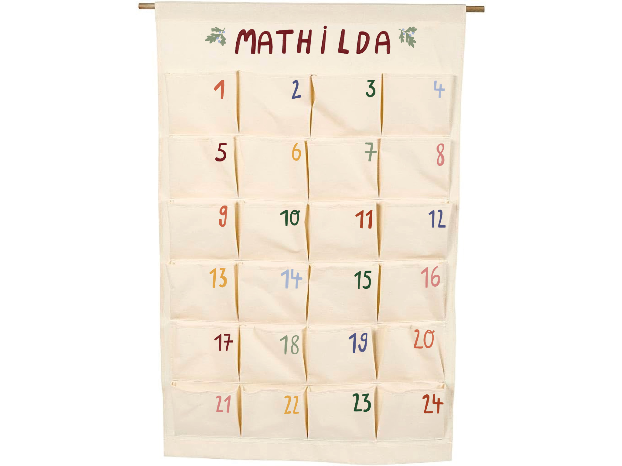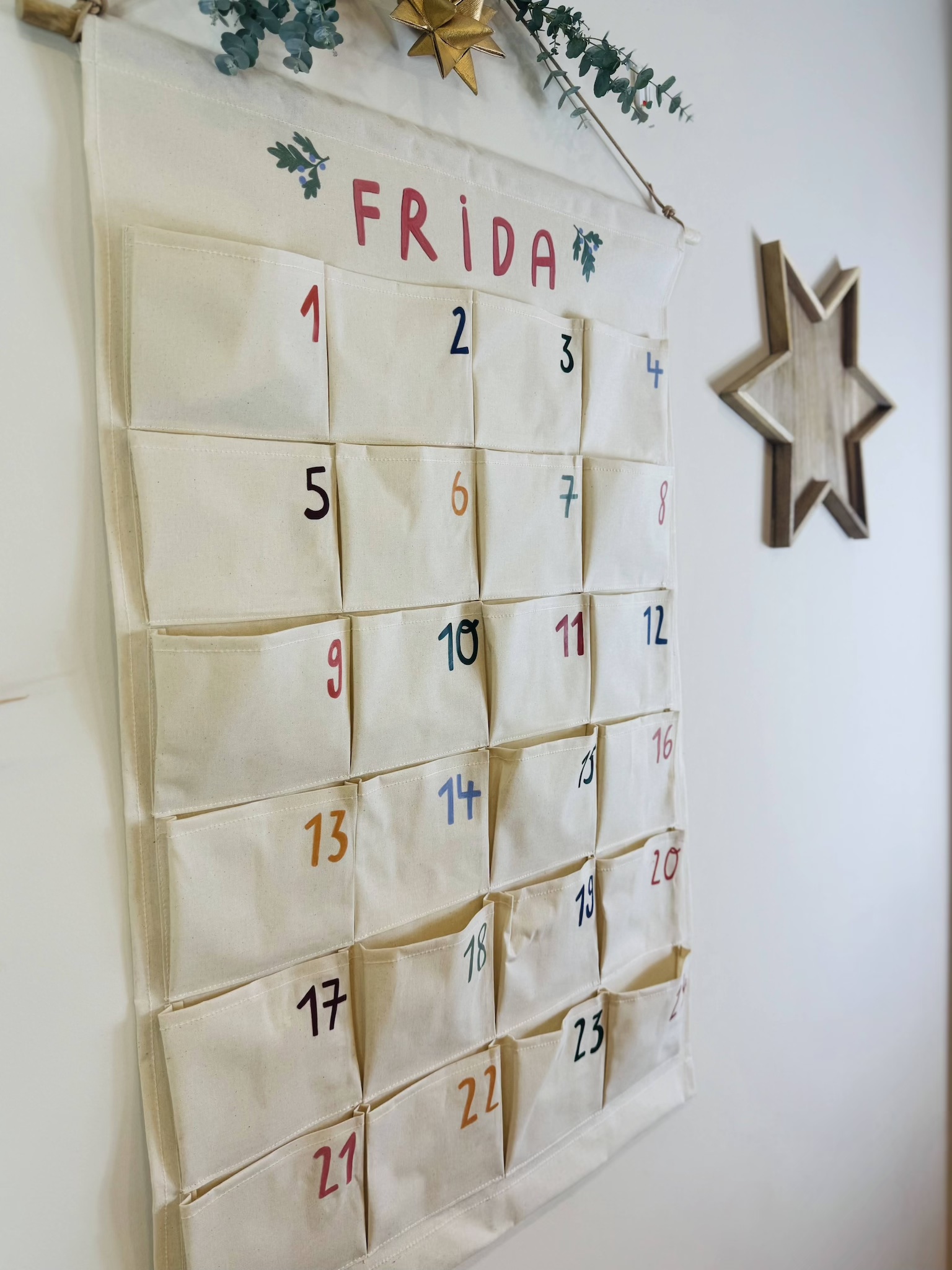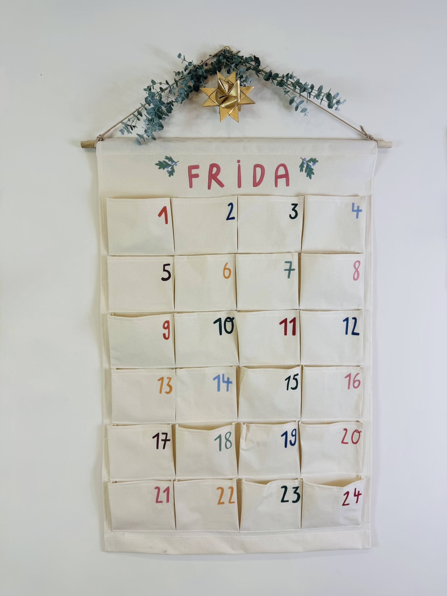 1 x personalisierter Canvas-Adventskalender mit 24 Taschen