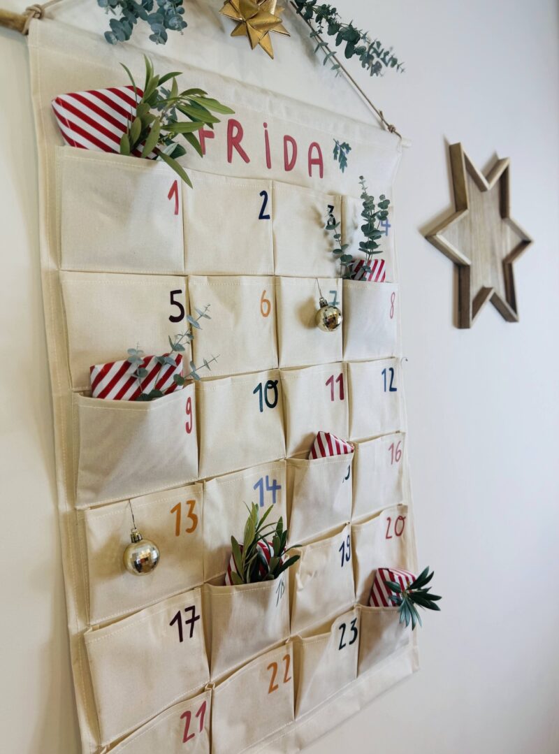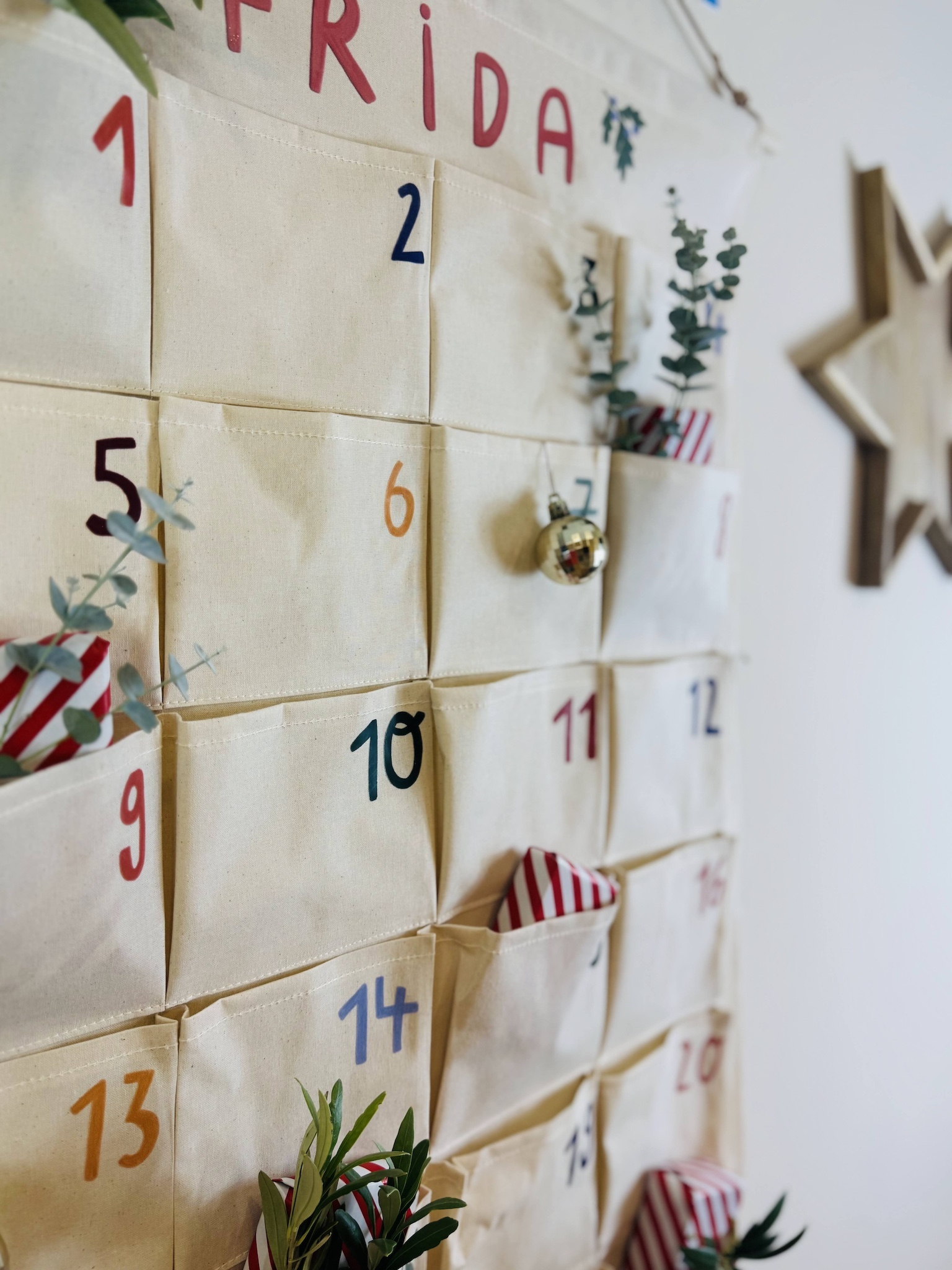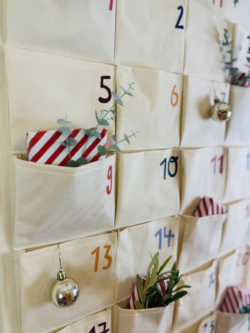 1 x personalisierter Canvas-Adventskalender mit 24 Taschen
