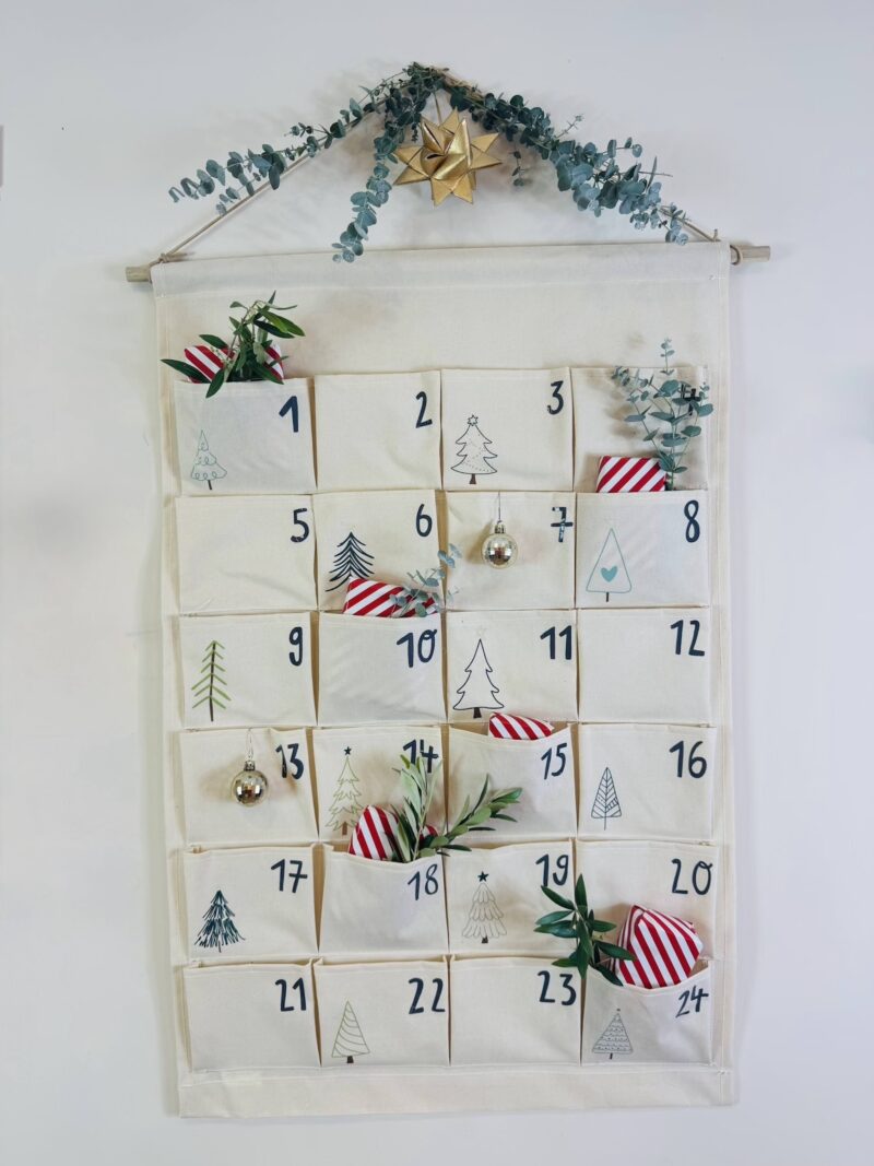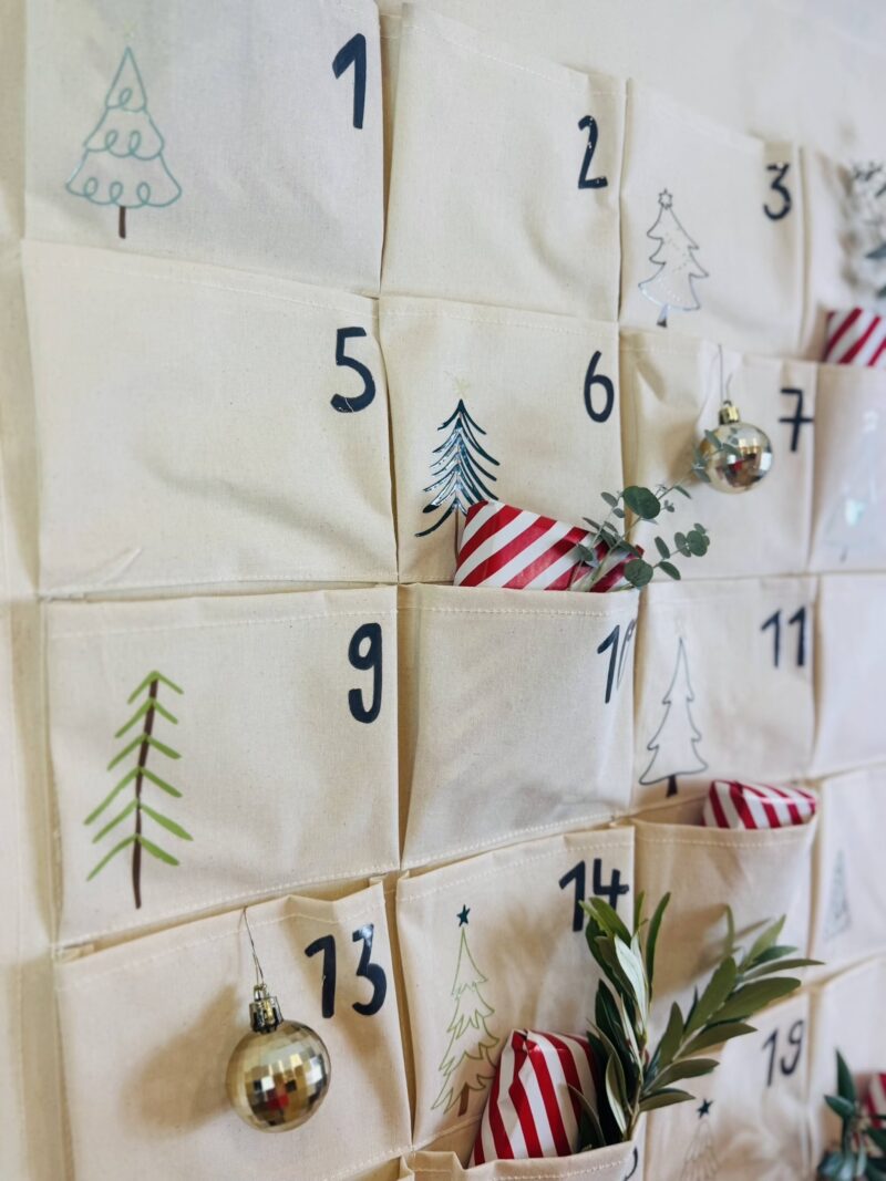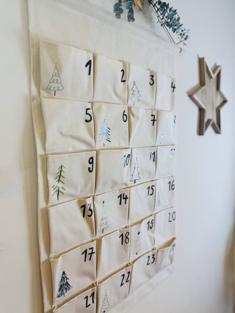 1 x personalisierter Canvas-Adventskalender mit 24 Taschen