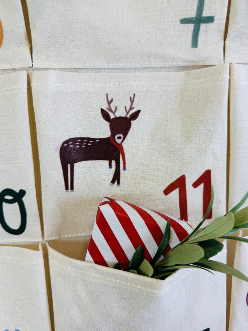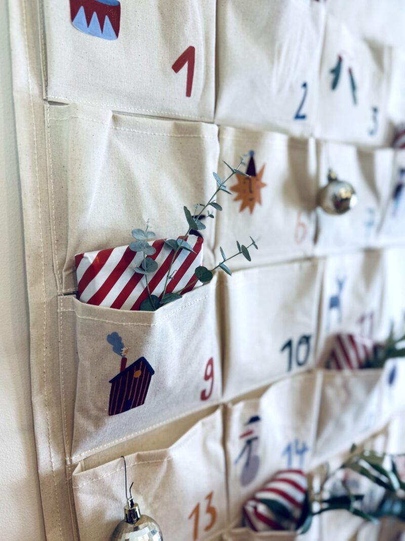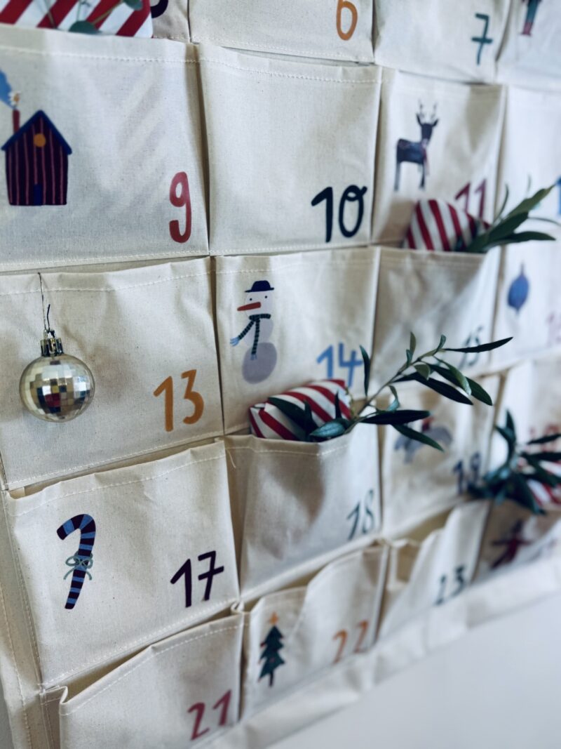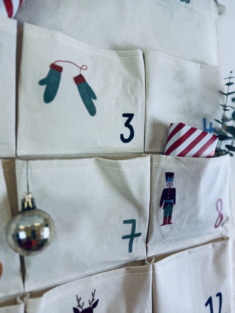 1 x personalisierter Canvas-Adventskalender mit 24 Taschen