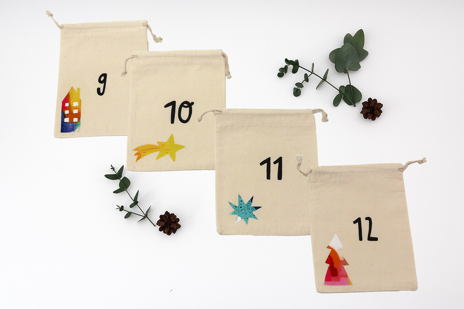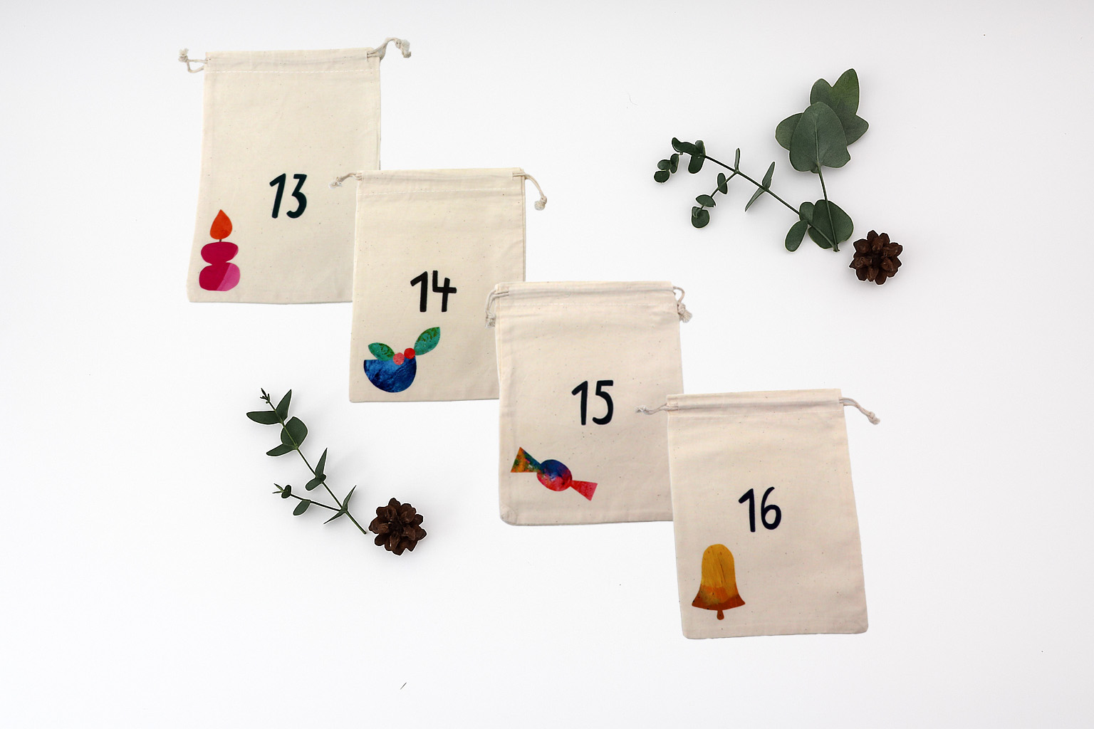 • Maße & Design: jedes Säckchen hat eine Größe von 15x20cm, 24 Säckchen mit unterschiedlichen Motiven und der jeweiligen Zahl,