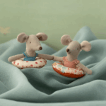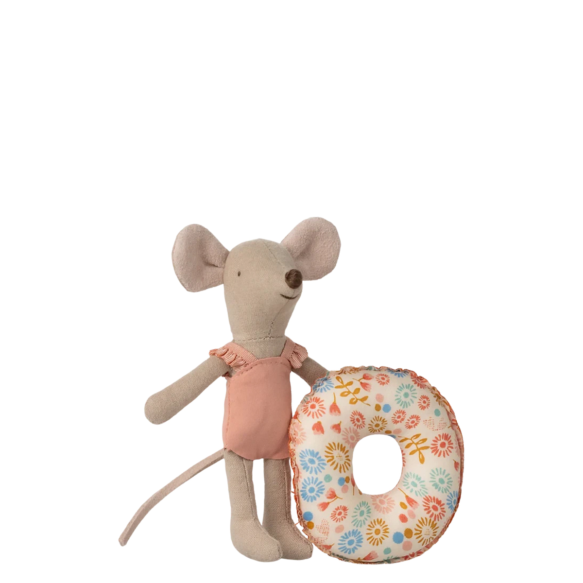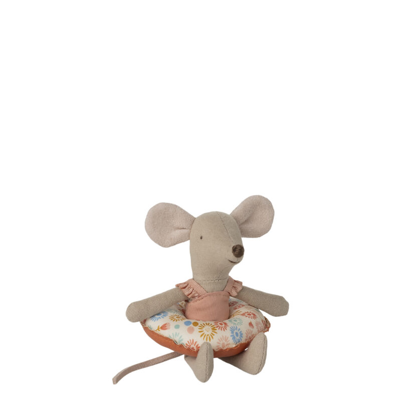 Dieses Sommerset besteht aus einer kleinen Schwester Maus, die in einen Badeanzug gekleidet ist und einen Schwimmring um den Bauch trägt. Jetzt ist sie bereit für sicheres Schwimmen im Meer.