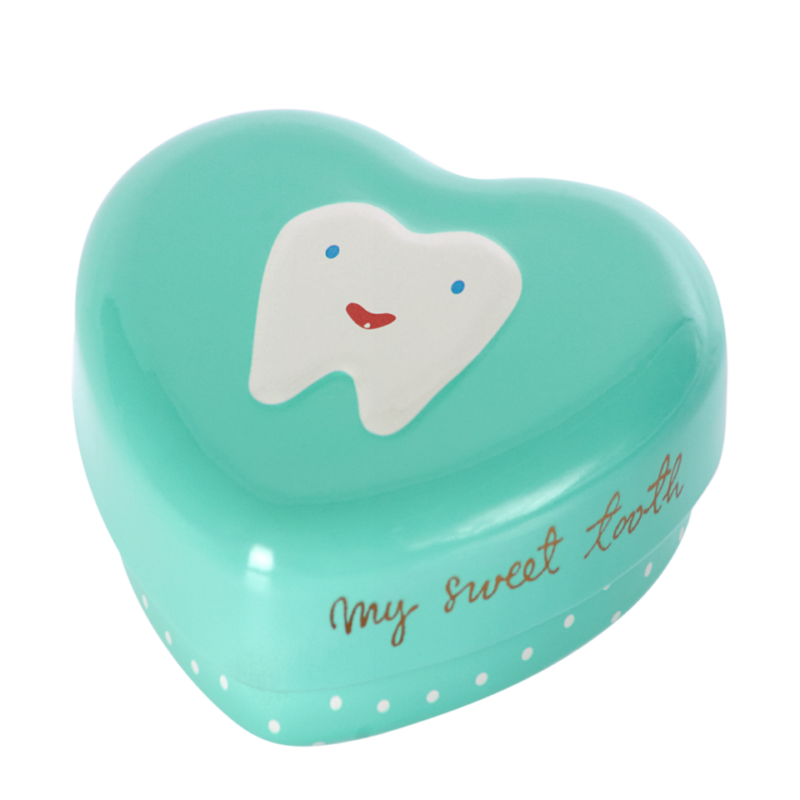 Kleine, herzförmige Dose von Maileg zum Aufbewahren der ersten Milchzähnchen.