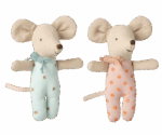 Doppelt Freude, doppelt Auf-Zack mit neu geborenen Zwillingen! Diese Twins von Maileg  kuscheln sich zusammen in ihre Schachtel, um einzuschlafen und Kraft zusammen um ihre Mami den ganzen Tag auf Trapp zu halten. Ein Mäusebaby trägt einen gestreiften, das andere kommt in einem gepunkteten Strampler. Die Mäuse eignen sich hervorragend zur Förderung der Phantasie.