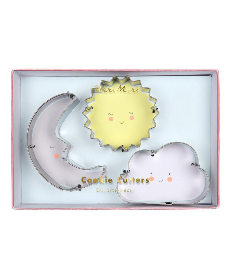 Mit den aussergewöhnlichen Ausstechformen von Meri Meri. kannst du kreative Kekse backen! Mit den Mond, Sonne und Wolke aus Edelstahl hast du sensationelle Ausstecherformen für tolle Kekse bei jeder Wetterlage!