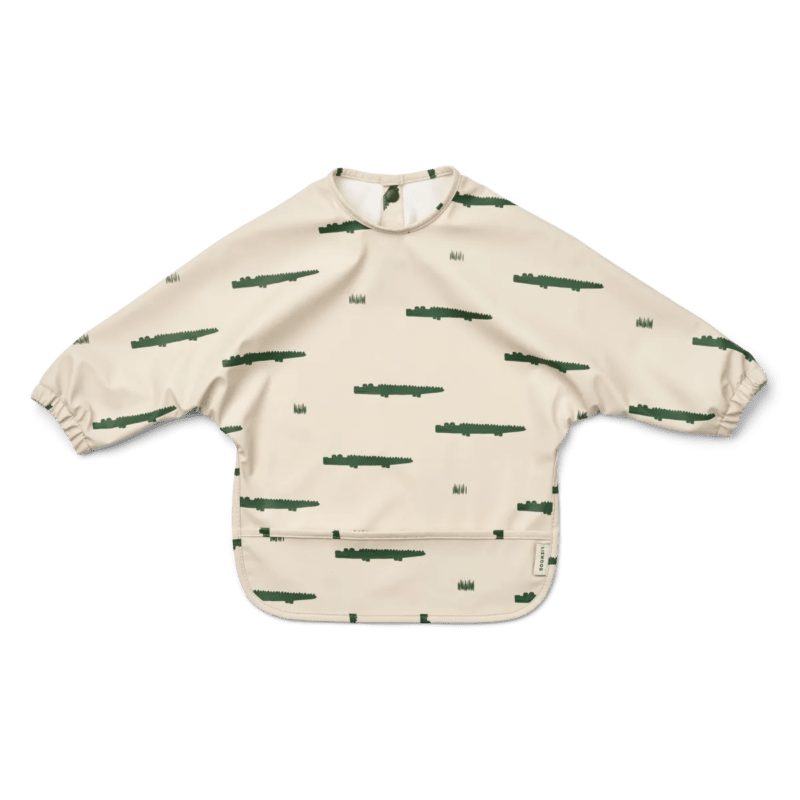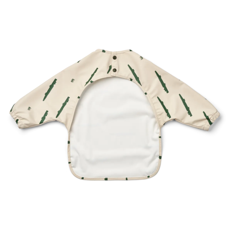 Lange Ärmel mit elastischen Bündchen schützen die Kleidung.
