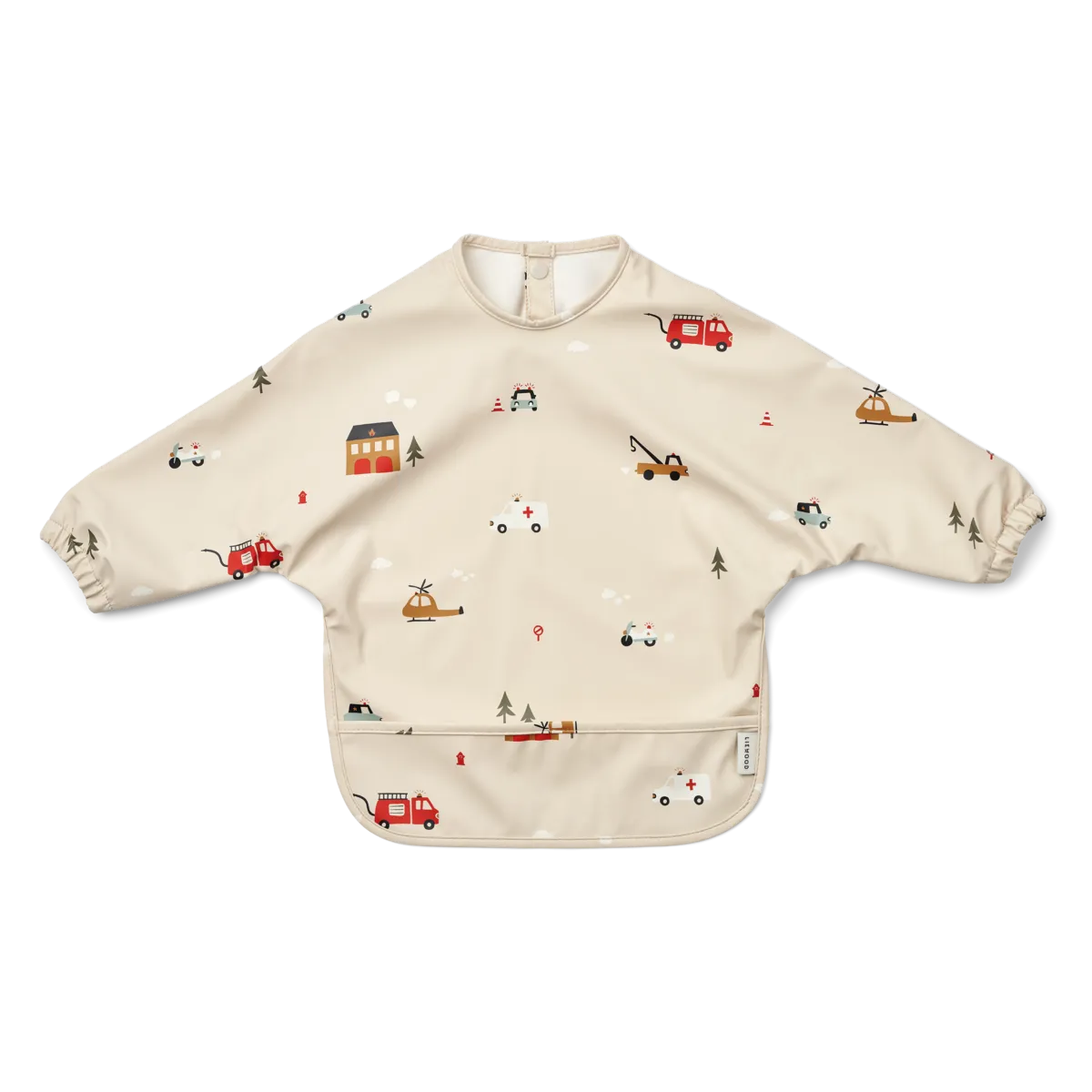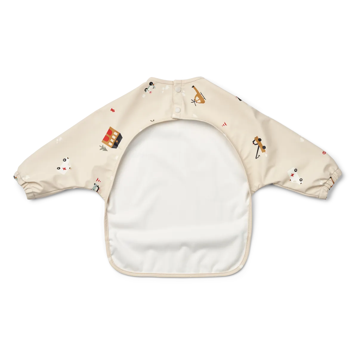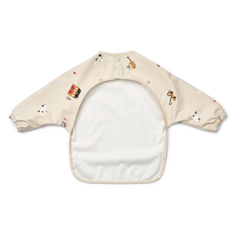 Lange Ärmel mit elastischen Bündchen schützen die Kleidung.