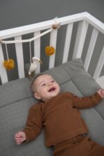 Dieses Strickspielzeug definiert sich durch sein klares, reduziertes Design und die hochwertigen Materialen. Perfekt um Neugeborene zu unterhalten, zu beruhigen und zu entspannen. Das gestrickte Spielzeug sind weich und fröhlich, aus Bio-Baumwolle mit einer Füllung aus recycelten Materialien.
