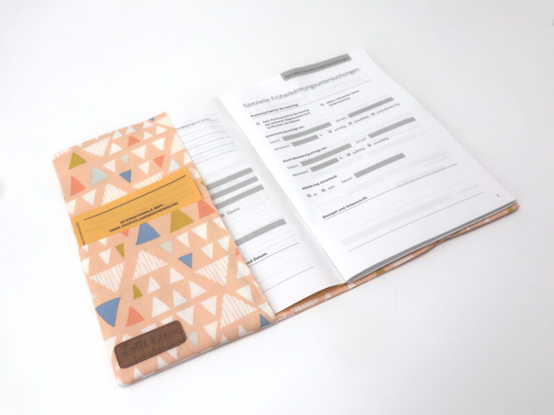 Mit dieser U-Heft Hülle bleibt das U-Heft immer gut geschützt und ist dazu noch ein hübscher Begleiter für unterwegs. Für 5 EUR kann ein Name mit Holzwürfeln auf das Verschlussband gezogen werden.