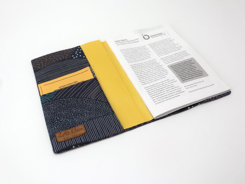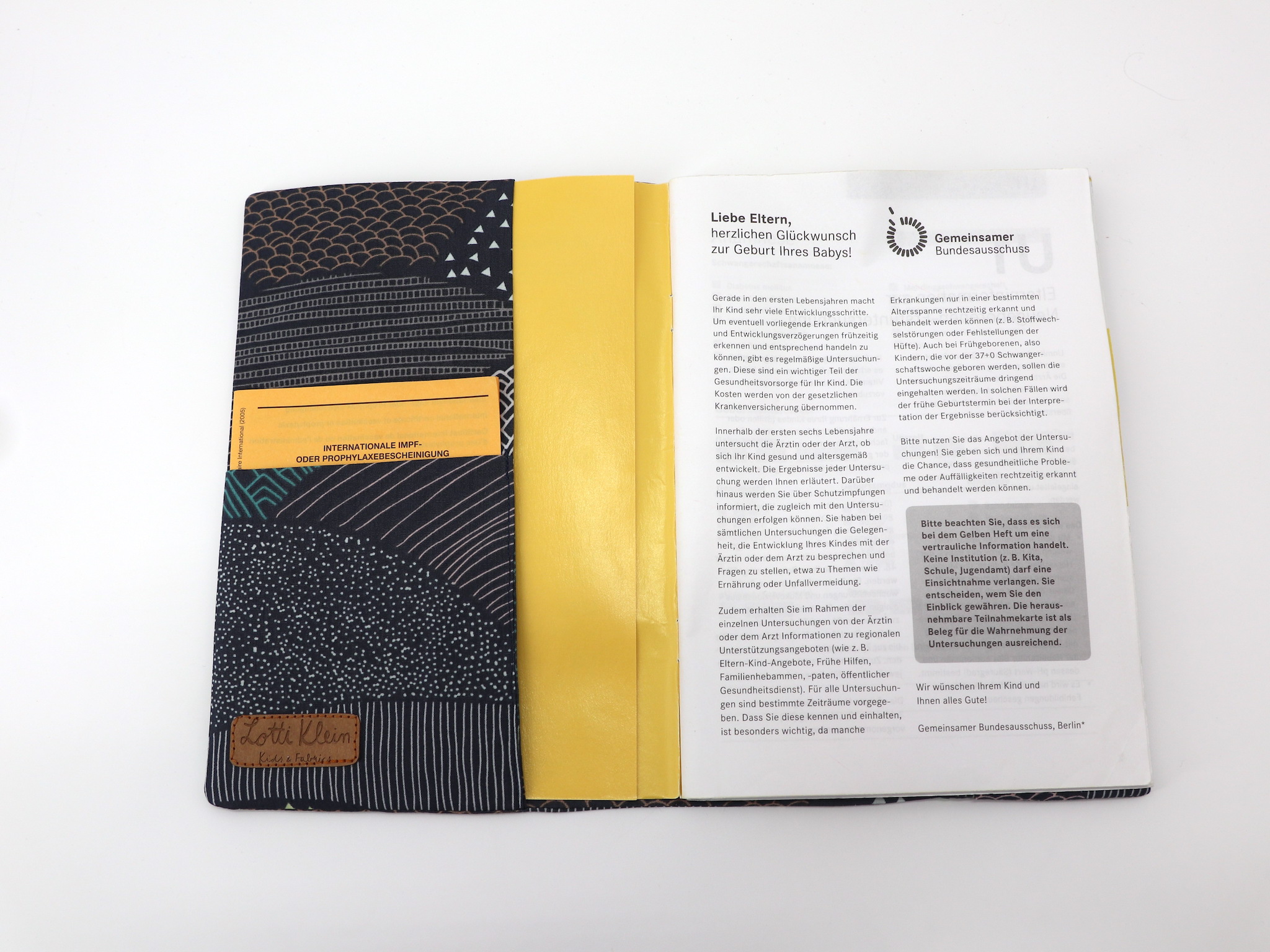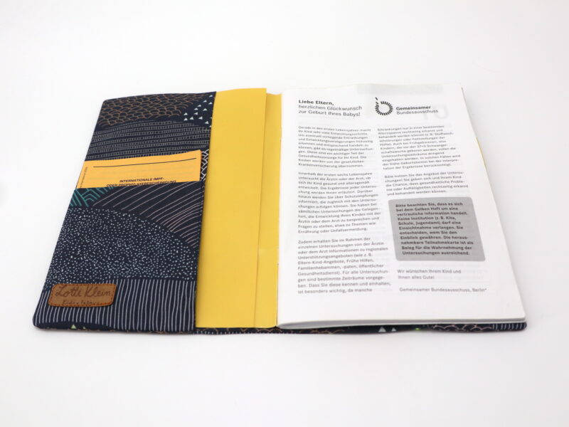Mit dieser U-Heft Hülle bleibt das U-Heft immer gut geschützt und ist dazu noch ein hübscher Begleiter für unterwegs. Für 5 EUR kann ein Name mit Holzwürfeln auf das Verschlussband gezogen werden.