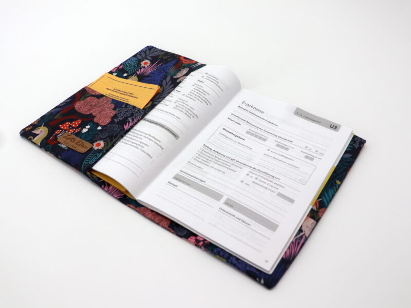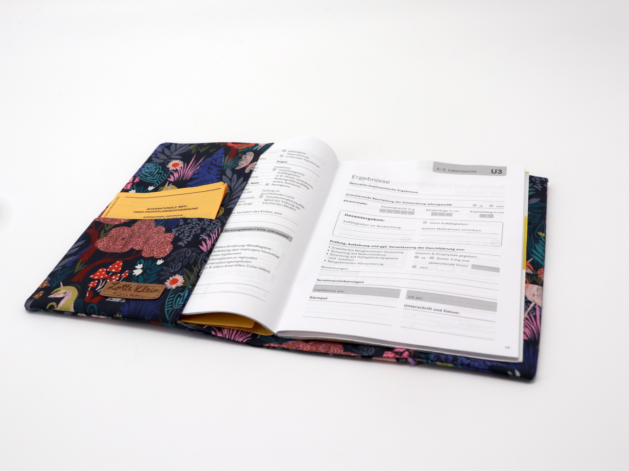 Mit dieser U-Heft Hülle bleibt das U-Heft immer gut geschützt und ist dazu noch ein hübscher Begleiter für unterwegs. Für 5 EUR kann ein Name mit Holzwürfeln auf das Verschlussband gezogen werden.