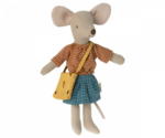 Das bezaubernde Ankleide-Set von Maileg für deine, kleine Mäuse-Mama enthält ein gestreiftes Obersteil, karierten Faltenrock und eine witzige Tasche im Käsescheiben-Look – schau, die hat sogar keine Käselöcher!