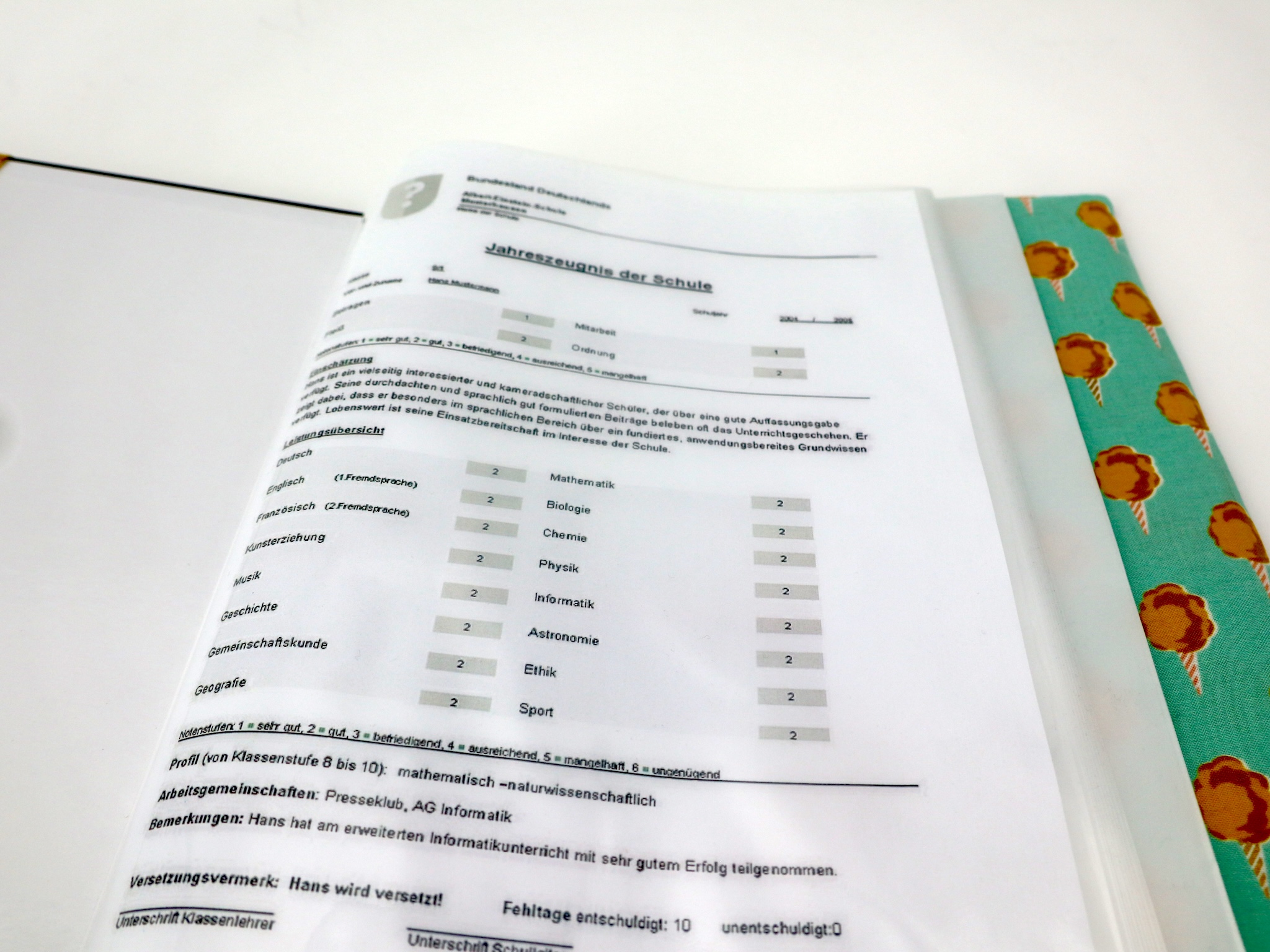 Je nach Zuschnitte kann das Motiv auf der Zeugnismappe etwas variieren.