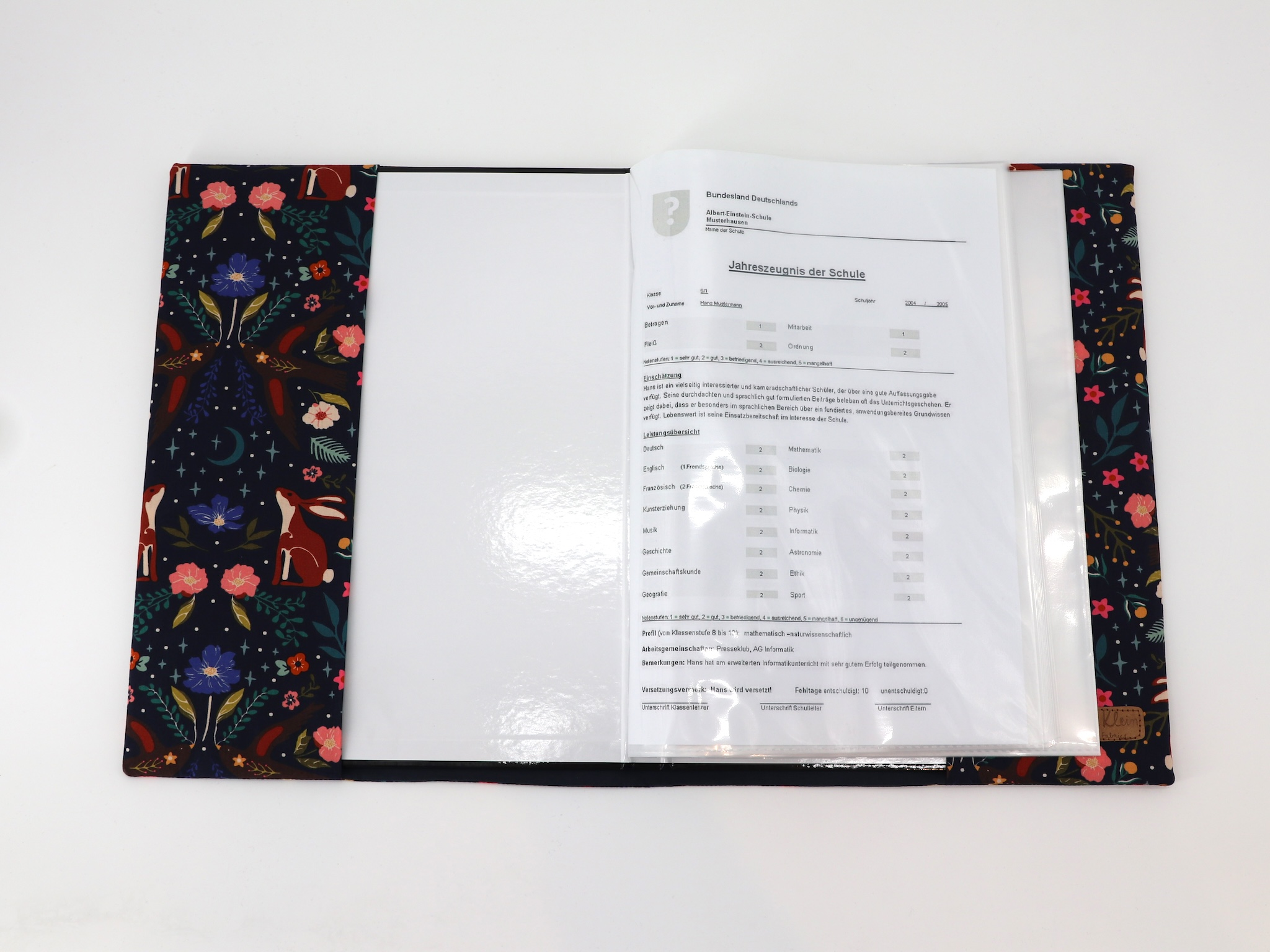 Unsere Zeugnismappen kommen mit einem Sichtbuch im A4-Format. Das Sichtbuch enthält 30 Folien. So sind Zeugnisse, Urkunden, Notenblätter oder die gesammelten Kunstwerke Deines Kindes bestens aufgehoben und können dank des einzigartigen Einbandes noch ein wenig stolzer präsentiert werden!