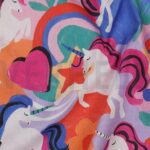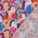 Der Popeline Einhörner multicolor begeistert mit seinem ansprechenden Motiv und eignet sich hervorragend für Kinderkleidung, Schultüten, Taschen, Quilts und kreative Nähprojekte aller Art. Das leichte, glatte Gewebe lässt sich einfach zuschneiden, nähen und bügeln.