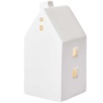 Dank der integrierten LED im Innenraum des weißen Hauses strahlt es ein sanftes, gemütliches Licht aus. Ob auf dem Tisch, im Regal oder auf der Fensterbank – dieses charmante Porzellanhaus setzt überall festliche Akzente.