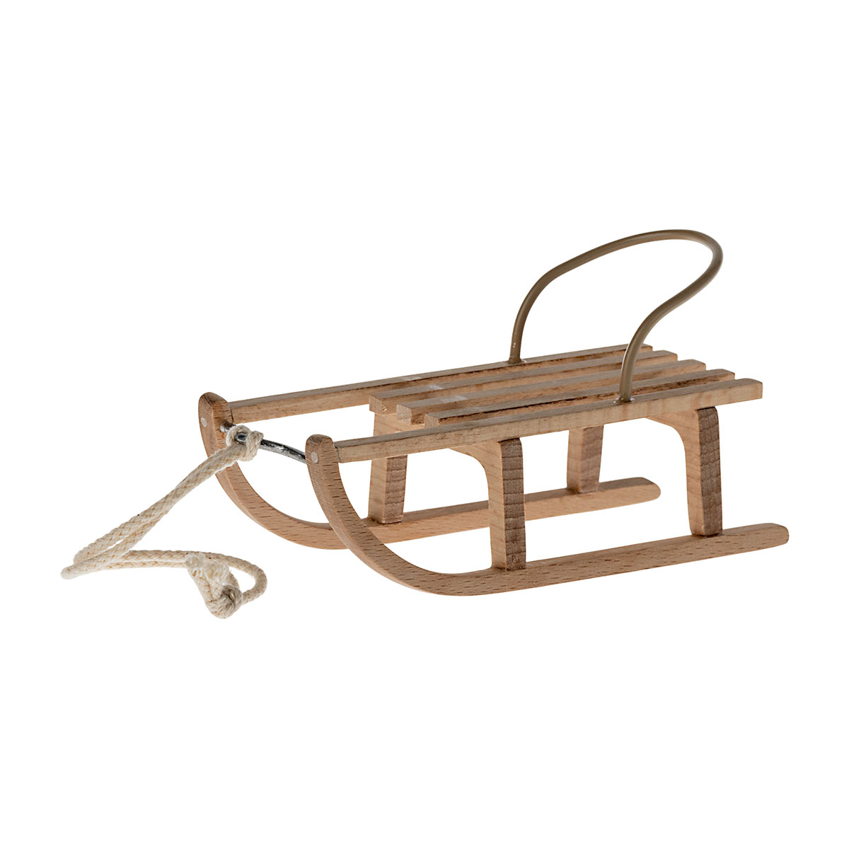 Bereite Deinen Maileg Mäusen eine Freude mit ihrem eigenen Miniatur Schlitten! Dieses in Handarbeit gearbeitete Holzspielzeug ist ideal für alle kleinen Maileg Mäuse von Kleiner Bruder bis Oma und Opa Maus, die bereit sind, im Schnee zu spielen. Der Schlitten ist natürlich auch hervorragend als Dekoration für eine Wichteltür geeignet.