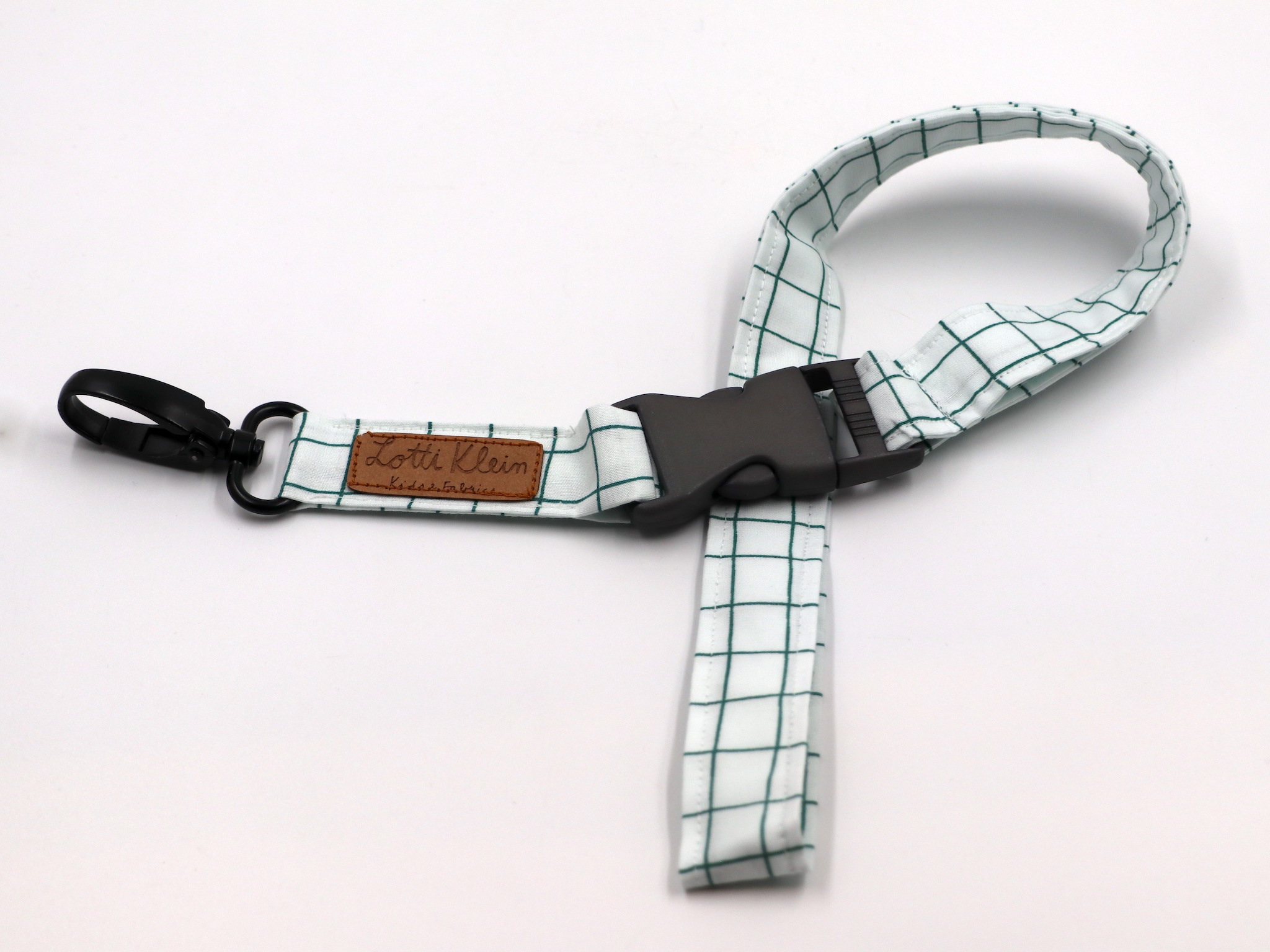| Material Produkt | Band: Baumwolle, Karabiner: Metall /Schlüsselring: Edelstahl und Steckschließe: Kunststoff |