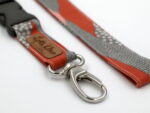 Karabiner oder Edelstahl Schlüsselring, ganz nach deinen Geschmack! Du möchtest das Band gern kürzer? Steckschließe benötigst du nicht – auch das geht!