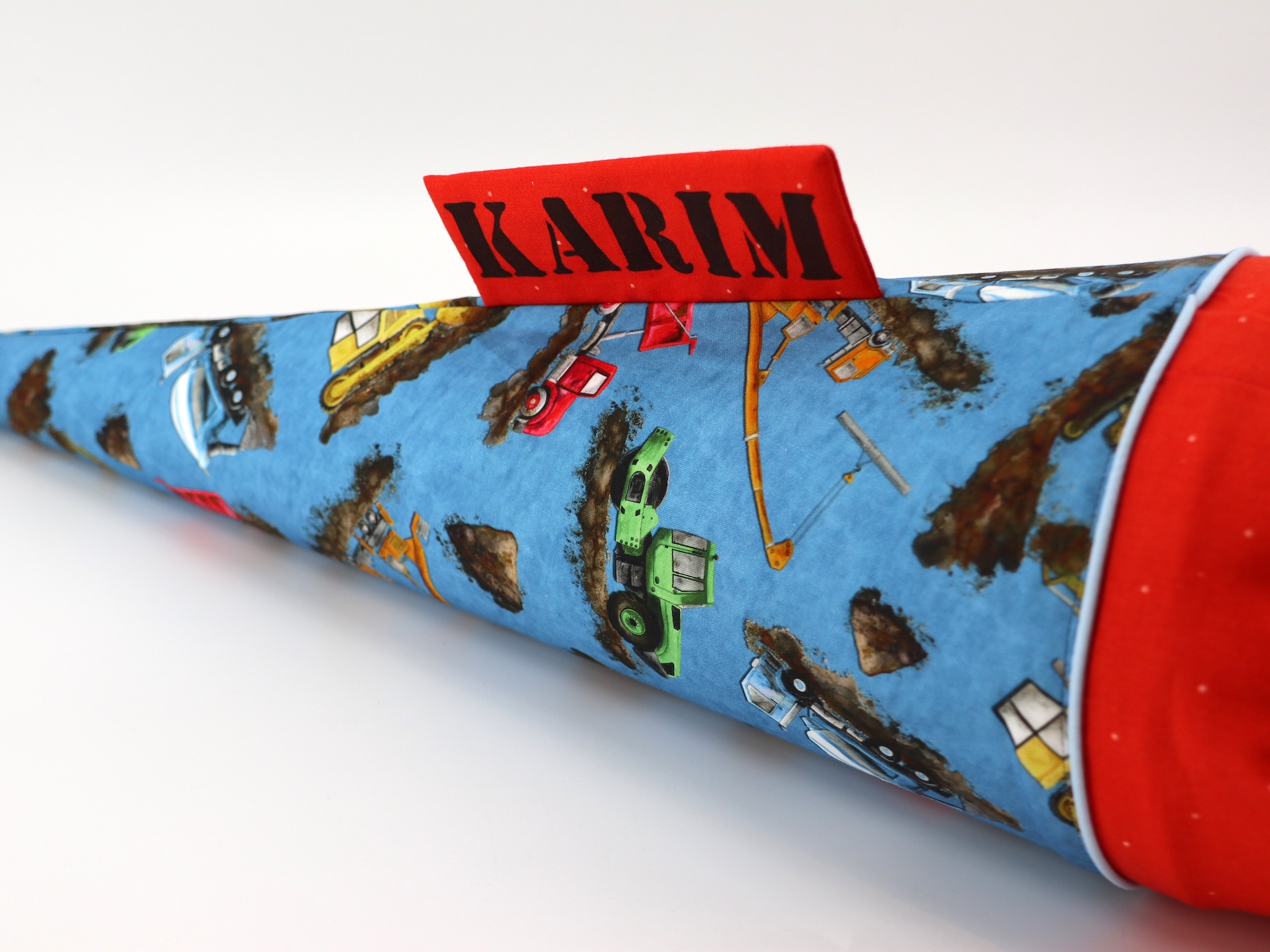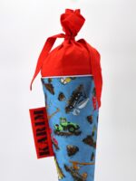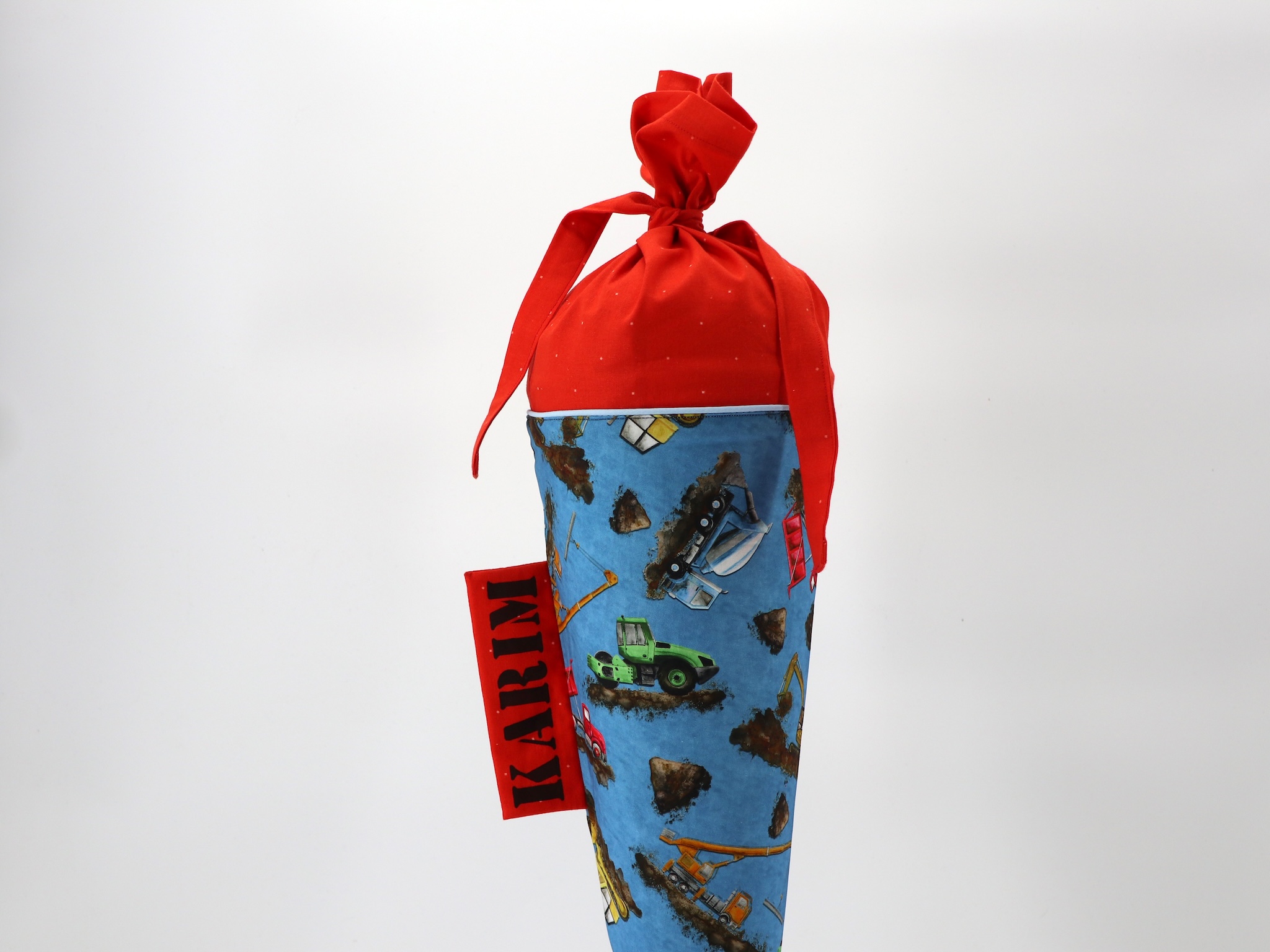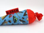 Die Schultüte wird aus hochwertigen Designerstoffen genäht und auf Wunsch mit dem Namen des Schulkindes individualisiert. Die Tüte ist 70cm hoch und wird mit einem entsprechenden Papprohling geliefert. Um eine bleibende Erinnerung an den Einschulungstag zu haben, kann nach der Einschulung der Papprohling aus der Schultüte entfernt werden und und mit dem Inlet als Kuschelkissen Einzug in das Kinderzimmer halten.