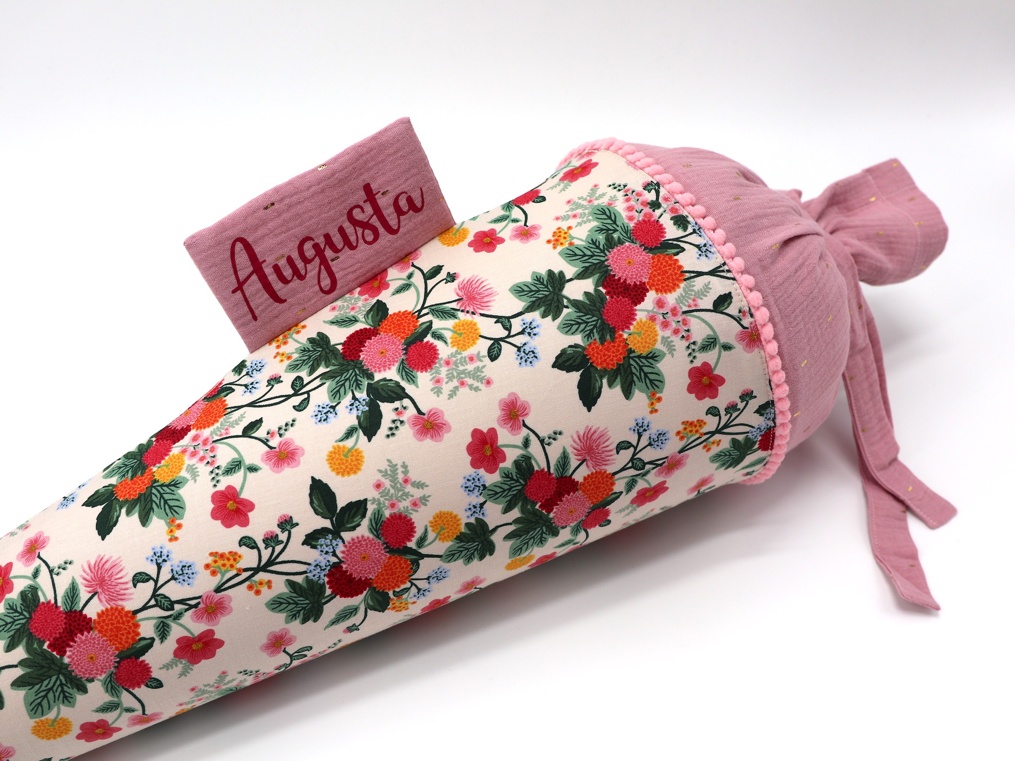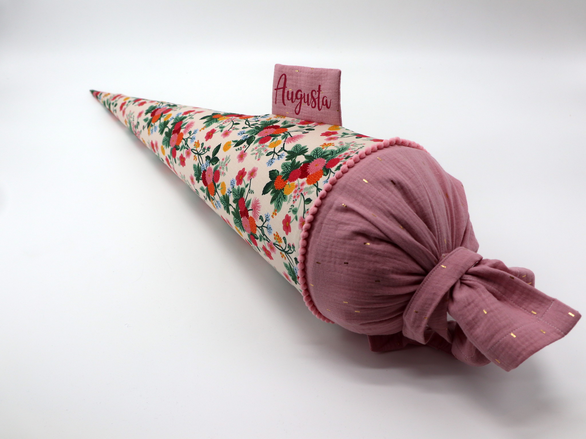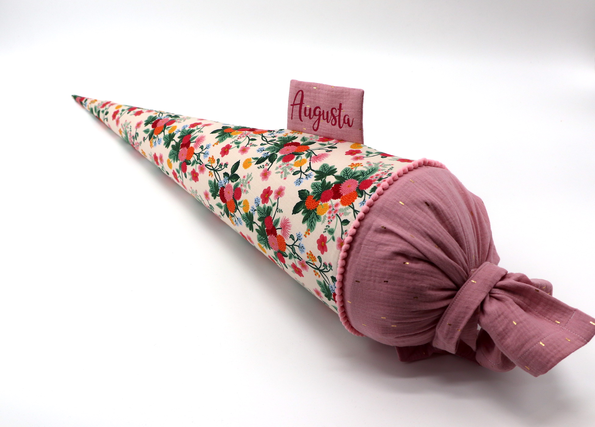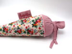 Die Schultüte wird aus hochwertigen Designerstoffen genäht und auf Wunsch mit dem Namen des Schulkindes individualisiert. Die Tüte ist 70cm hoch und wird mit einem entsprechenden Papprohling geliefert. Um eine bleibende Erinnerung an den Einschulungstag zu haben, kann nach der Einschulung der Papprohling aus der Schultüte entfernt werden und und mit dem Inlet als Kuschelkissen Einzug in das Kinderzimmer halten.